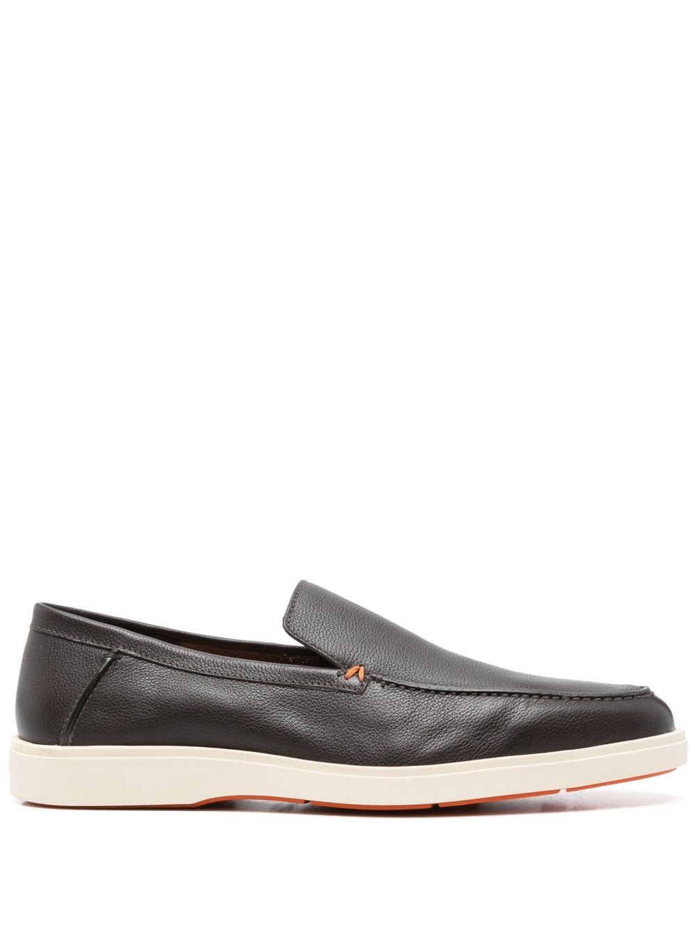 leather loafers Highlights - Ebony - Branded leather insole - Flat rubber sole - Almond toe Made in Italy Composition Outer: Calf Leather 100% Lining: Calf Leather 100% Sole: Rubber 100%
