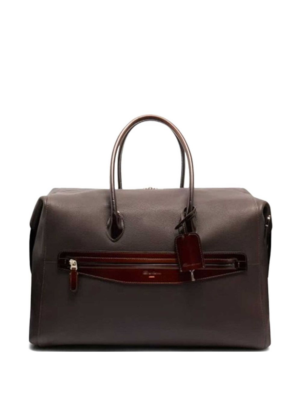 leather top-handle travel bag Highlights - Dark brown - Leather - Top handles - Detachable shoulder strap - Zip fastening Made in Italy Composition Leather 100% SIZE & FIT Measurement DEPTH 10.23 in(26 cm) HEIGHT 11.02 in(28 cm) WIDTH 17.91 in(45.5 cm)
