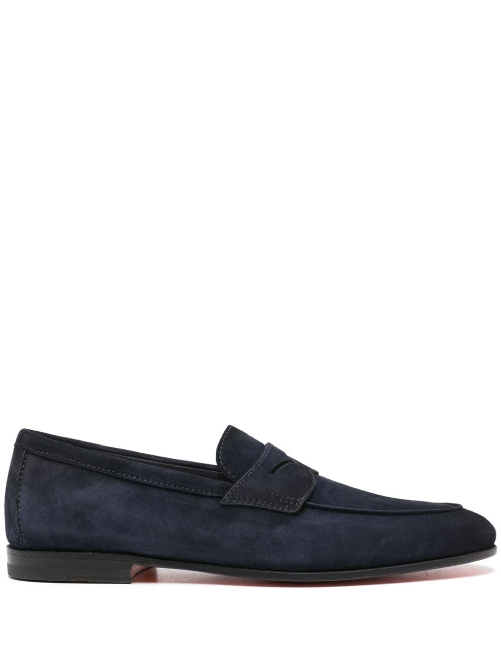 penny-slot suede loafers Highlights - Blue tint - Calf suede - Round toe - Penny slot - Branded leather insole - Flat sole - Slip-on style Made in Italy Composition Sole: Calf Leather 100% Lining: Calf Leather 100% Outer: Calf Suede 100% SIZE & FIT Measurement Sole height 0.39 in(1 cm) HEIGHT 1.18 in(3 cm)