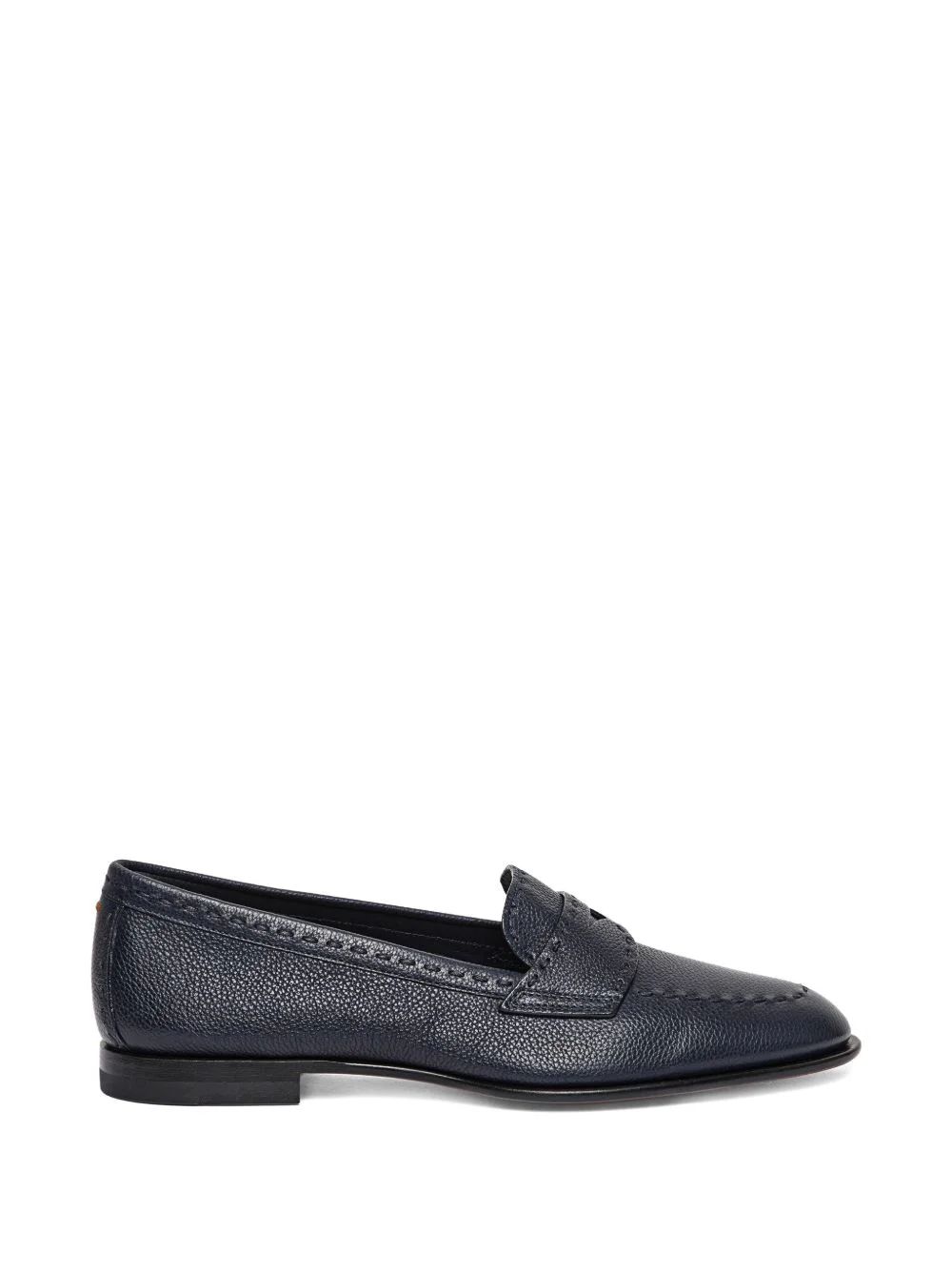 round-toe penny loafers Highlights - Blue - Leather - Stitch detailing - Penny bar - Slip-on style Made in Italy Composition Outer: Calf Leather 100% Lining: Lamb Skin 80%, Goat Skin 20% Sole: Calf Leather 100%