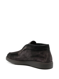 slip-on suede ankle boots brown calf suede/sheepskin pintuck detailing tonal stitching almond toe branded leather insole flat rubber sole slip-on style Made in Italy Composition Outer: Calf Suede 100% Lining: Sheepskin 100% Sole: Rubber 100% SIZE & FIT Measurement HEEL 0.98 in(2.5 cm) HEIGHT 3.14 in(8 cm) Sole height 0.59 in(1.5 cm)