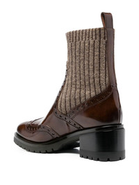 Women’s brown leather low-heel brogue sock-style ankle boot