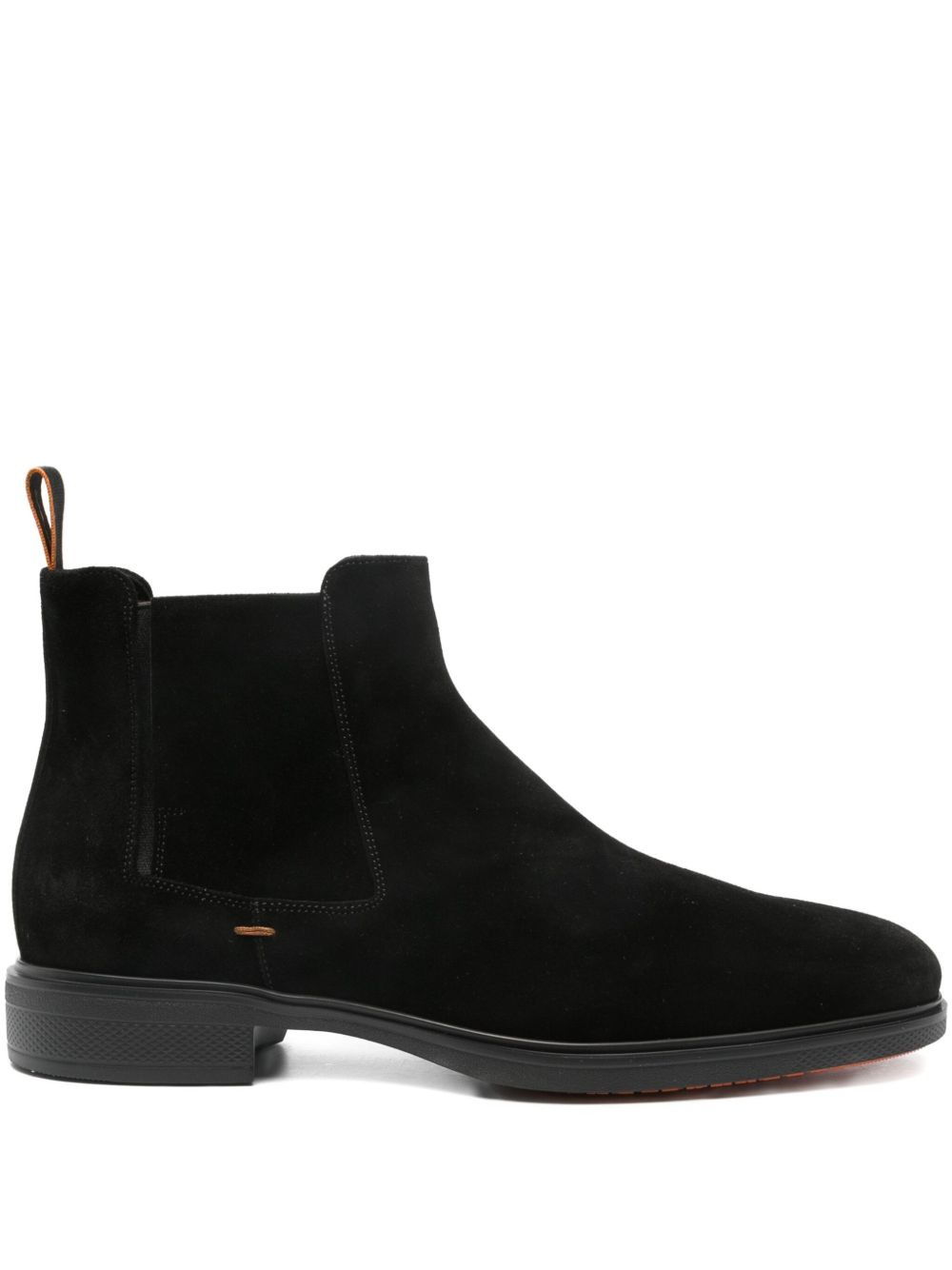 suede Chelsea boots Highlights - Black - Suede upper - Elasticated side panels - Round toe - Flat sole - Pull tab Made in Italy Composition Sole: Rubber 100% Lining: Calf Leather 100% Outer: Calf Suede 100% SIZE & FIT Measurement HEEL 1.18 in(3 cm)