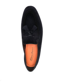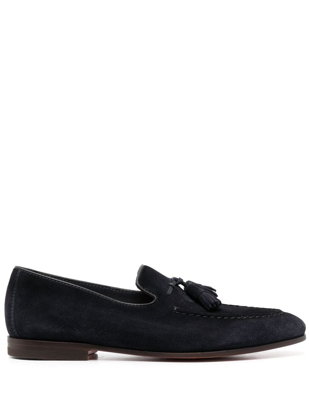 tassel detail loafers navy blue calf leather tassel detail slip-on style round toe low block heel branded leather insole Made in Italy Composition Lining: Calf Leather 100% Outer: Calf Suede 100% Sole: Calf Leather 100% SIZE & FIT Measurement HEEL 0.78 in(2 cm)