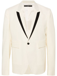 contrasting-trim single-breasted blazer Highlights - White/black - Wool - Crepe texture - Contrasting trim - Peak lapels - Front button fastening - Long sleeves - Buttoned cuffs - Two side flap pockets - Full lining - Internal pockets - American rear vent - Straight hem Made in Italy Composition Outer: Wool 100% Lining: Cupro 100% SIZE & FIT Model measurements Height 6 ft 1 in(1.86 m) Bust/Chest 37.4 in(95 cm) Hips 36.22 in(92 cm) Waist 29.52 in(75 cm) FittingInformation Designed for a slim fit, offering a comfortable fit that sits just away from the body The vented hem offers movement at the rear Made from a midweight non-stretch fabric This piece fits true to size – take your usual size