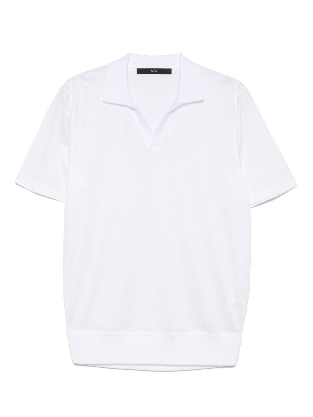 cotton top Highlights - White - Polo collar - Split neck - Short sleeves - Ribbed hem Made in Italy Composition Cotton 100%