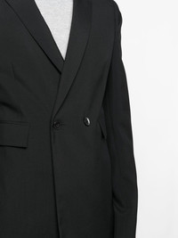 double-breasted tailored blazer jet black cotton-wool blend double-breasted button fastening long sleeves two side flap pockets tailored cut Made in Italy Composition Outer: Wool 100% Lining: Cupro 100%, Cotton 100% SIZE & FIT Model measurements Height 6 ft 2 in(1.88 m) Bust/Chest 36.61 in(93 cm) Hips 35.82 in(91 cm) Waist 27.95 in(71 cm) FittingInformation This piece fits true to size. We recommend you get your regular size Cut for a slim fit Made with a mid-weight non-stretch fabric Washing instructions Dry Clean Only