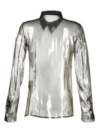 lame-effect long-sleeved shirt gold silk blend lame effect front button fastening classic collar long sleeves straight hem Made in Italy Composition Silk 65%, Polyester 35%