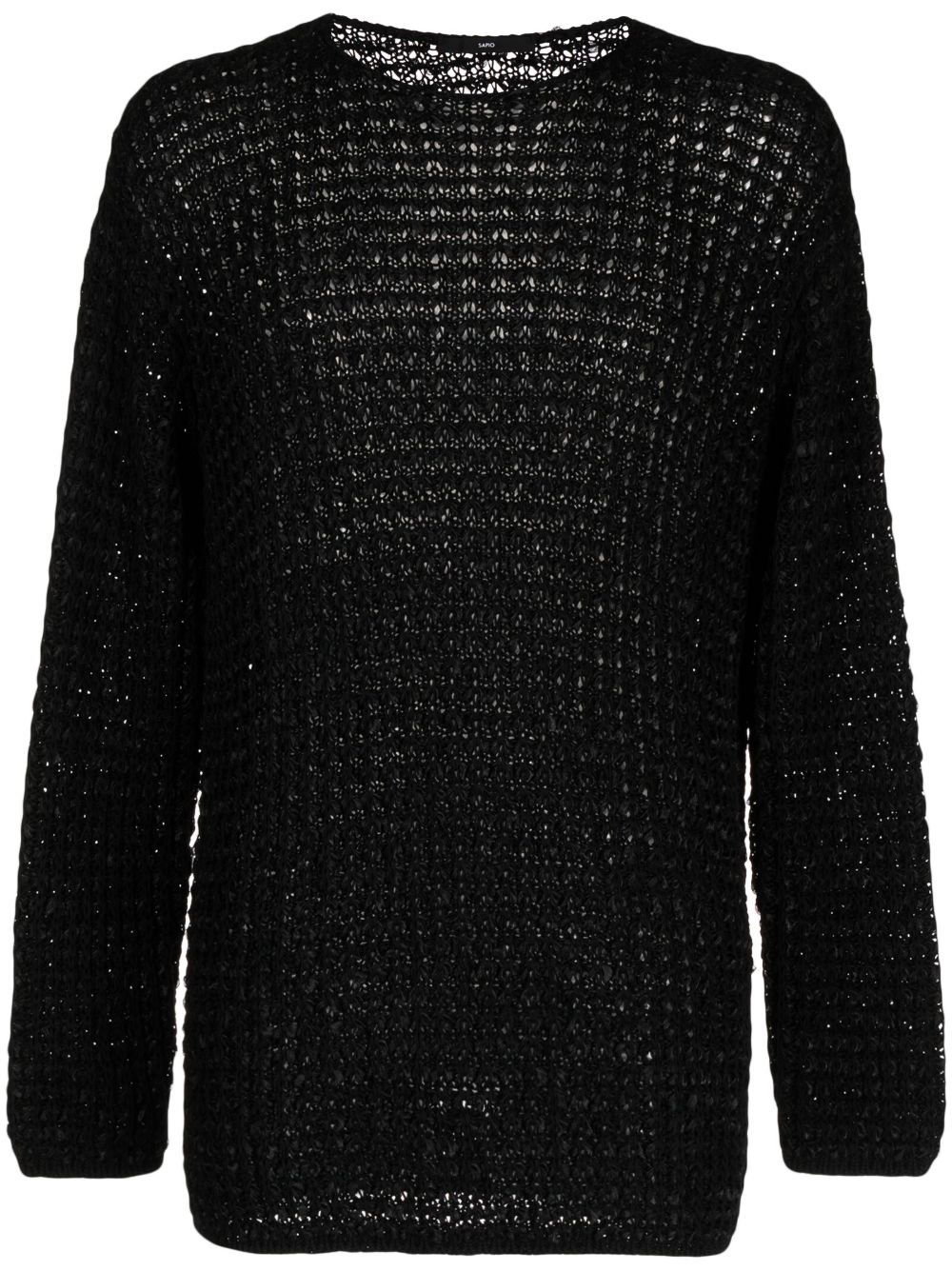long-sleeves open-knit jumper Highlights - Black - Organic cotton blend - Open knit - Round neck - Long sleeves - Ribbed cuffs and hem Made in Italy Composition Organic Cotton 56%, Polyamide 44%