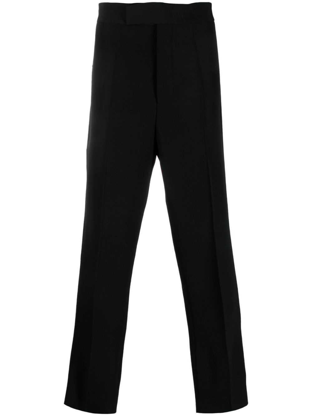 N9 low-rise tailored trousers Highlights - Jet black - Wool-cotton blend - Low-rise - Pressed crease - Off-centre front fastening - Two side inset pockets - Two rear flap pockets - Straight leg - Tailored cut Made in Italy Composition Outer: Wool 100% Lining: Cotton 100%, Cupro 100% SIZE & FIT Model measurements Height 6 ft 2 in(1.88 m) Bust/Chest 37.79 in(96 cm) Hips 35.82 in(91 cm) Waist 29.92 in(76 cm) FittingInformation Designed for a straight-leg, allowing for an unrestricted and comfortable fit over the leg The unfinished hems allow for the length to be altered Made from a midweight non-stretch fabric This piece fits true to size – take your usual size