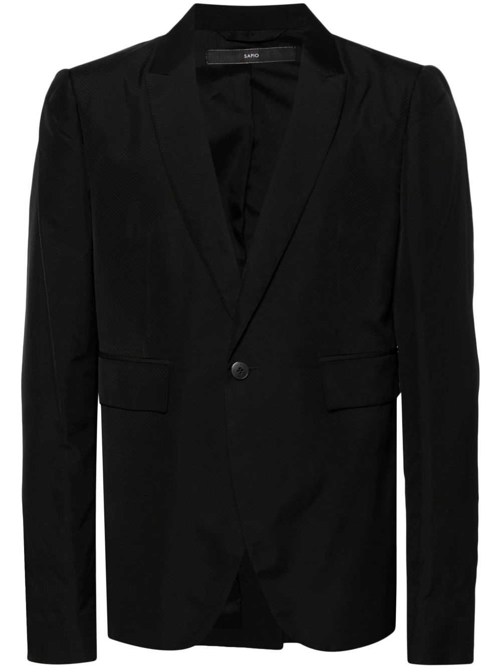 single-breasted jacquard blazer Highlights - Black - Jacquard - Peak lapels - Front button fastening - Long sleeves - Buttoned cuffs - Two side flap pockets - Central rear vent - Full lining Made in Italy Composition Lining: Cupro 100% Outer: Cupro 100% SIZE & FIT Model measurements Height 6 ft 2 in(1.87 m) Bust/Chest 33.07 in(84 cm) Hips 35.43 in(90 cm) Waist 26.77 in(68 cm) FittingInformation Designed to be unstructured, offering a loose fit throughout The internal shoulder pads offer a structured shape Made from a midweight non-stretch fabric This piece fits true to size – take your usual size