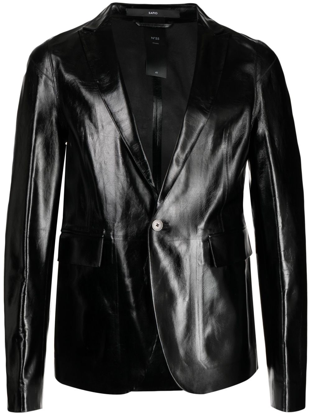 single-breasted leather blazer Highlights - Black - Calf leather - Front button fastening - Two front flap pockets - Classic lapels - Long sleeves - Central rear vent - Straight hem Made in Italy Composition Calf Leather 100%