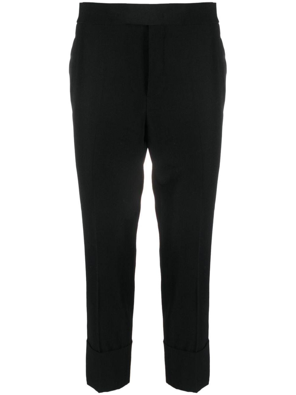 straight-leg cropped trousers Highlights - Straight-leg cropped trousers from sapio featuring black, wool, fsc viscose, straight leg, dart detailing, concealed front fastening, two rear flap pockets, cropped leg, turn-up hem and tailored cut. Made in Italy Composition Outer: Wool 100%, Polyester 100% Lining: Cupro 100%, Cotton 100%