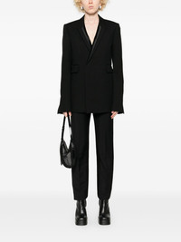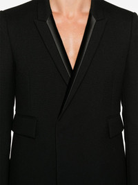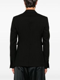 wool blazer Highlights - Black - Wool - Textured finish - Double-breasted button fastening - Peak lapels - Shoulder pads - Long sleeves - Buttoned cuffs - Two side flap pockets - Central rear vent - Straight hem - When buying this unisex item, keep in mind that it is graded in standard men's sizing. Made in Italy Composition Outer: Wool 100%, Polyester 100% Lining: Cupro 100%, Cotton 100% Washing instructions Dry Clean Only