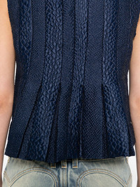 Fayetta top Highlights - Dark blue - Concealed rear hook and zip fastening - Sleeveless - Fully pleated Imported Composition Polyester 100% SIZE & FIT Model measurements Height 5 ft 10 in(1.77 m) Bust/Chest 28.34 in(72 cm) Hips 36.22 in(92 cm) Waist 25.19 in(64 cm) FittingInformation Designed for a slim fit that sits just away from the body offering a close yet comfortable fit Made from a midweight non-stretch fabric