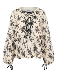 floral-print tie-front top Highlights - Cream - Floral print - Tie front - Long sleeves - Cinched waist - Drawstring hem Imported Composition Lining: Cotton 100% Outer: Viscose 80%, Nylon 20% Washing instructions Read Manufacturer Guidelines