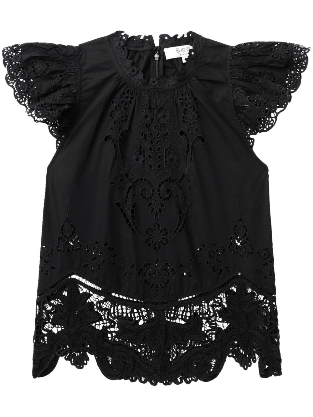Gianna blouse Highlights - Black - Concealed rear zip fastening - Embroidered motif - Crew neck - Short sleeves Imported Composition Cotton 100%
