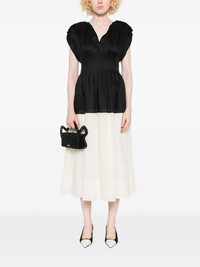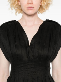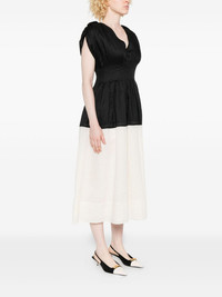 pleated V-neck mini dress Highlights - Black and off-white - V-neck - Short sleeves - Pleated skirt Imported Composition Outer: Ramie 100% Lining: Cotton 100% SIZE & FIT Model measurements Height 5 ft 9 in(1.75 m) Bust/Chest 34.64 in(88 cm) Hips 36.61 in(93 cm) Waist 26.37 in(67 cm) Washing instructions Read Manufacturer Guidelines