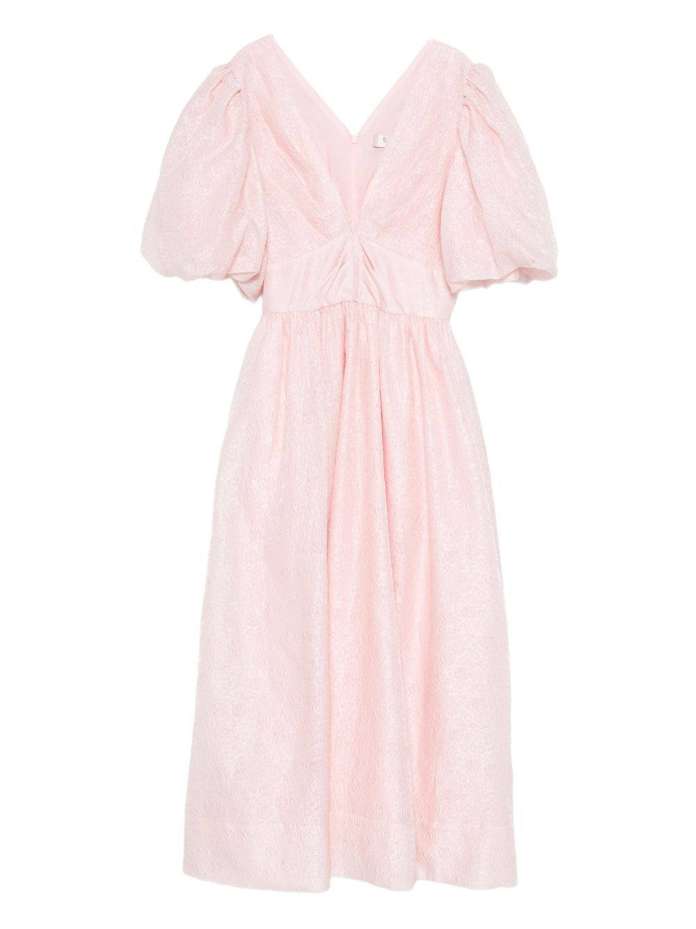 puff-sleeve V-neck midi dress Highlights - Pink - V-neck - Puff sleeves - Flared skirt Imported Composition Outer: Polyester 58%, Polyamide 42% Lining: Cotton 100% SIZE & FIT Model measurements Height 5 ft 9 in(1.75 m) Bust/Chest 34.64 in(88 cm) Hips 36.61 in(93 cm) Waist 26.37 in(67 cm) Washing instructions Read Manufacturer Guidelines