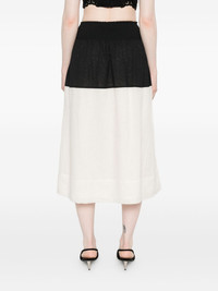 two-tone midi skirt Highlights Imported Composition Outer: Polyester 100%, Ramie 100% Lining: Cotton 100% SIZE & FIT Model measurements Height 5 ft 9 in(1.75 m) Bust/Chest 34.64 in(88 cm) Hips 36.61 in(93 cm) Waist 26.37 in(67 cm)