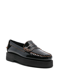 35mm Kara loafers Highlights - Black - Calf leather - Patent finish - 35mm platform sole - Contrast stitching - Raised seam detail - Penny slot - Almond toe - Branded insole - Rubber sole Imported Composition Leather 100% SIZE & FIT Measurement HEEL 1.37 in(3.5 cm) Sole height 0.98 in(2.5 cm)