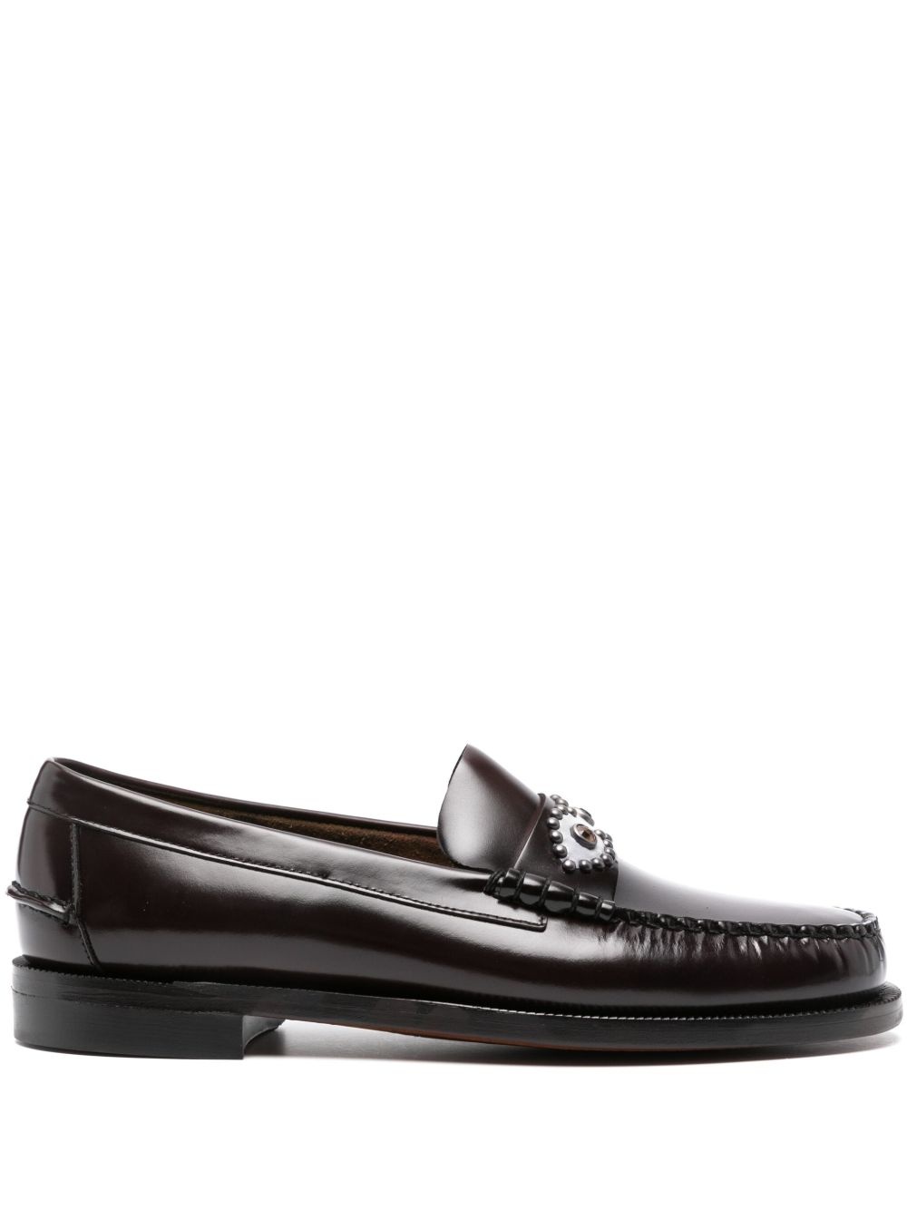 Classic Dan Eyes loafers Highlights - Burgundy - Calf leather - Brushed effect - Slip-on style - Penny slot - Stud detailing - Crystal embellishment - Almond toe - Branded leather insole - Rubber sole Imported Composition Outer: Calf Leather 100% Lining: Calf Leather 100% Sole: Rubber 100%, Calf Leather 100% SIZE & FIT Measurement HEEL 0.98 in(2.5 cm) Sole height 0.39 in(1 cm)