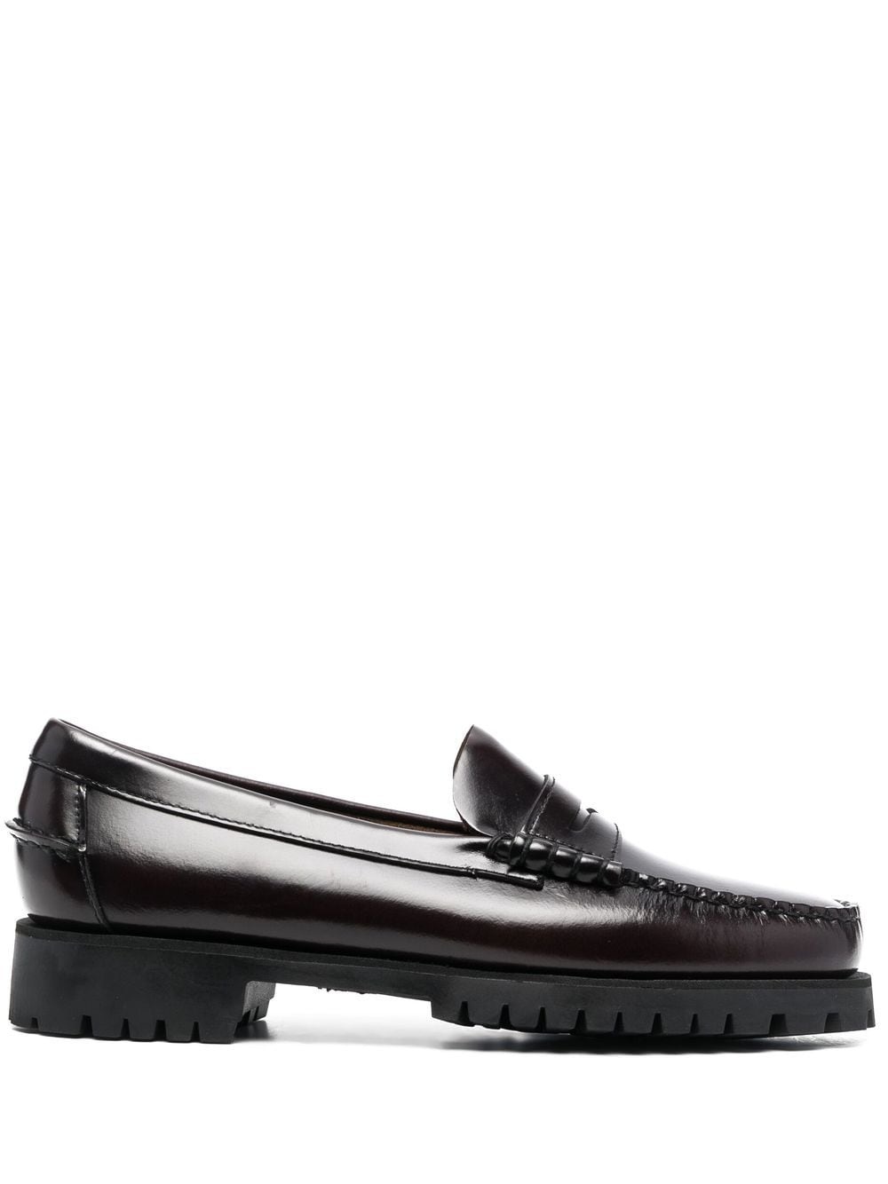 Dan penny flat loafers brown calf leather penny slot round toe slip-on style branded insole flat rubber sole Imported Composition Leather 100% SIZE & FIT Measurement HEEL 1.18 in(3 cm) Sole height 0.59 in(1.5 cm)