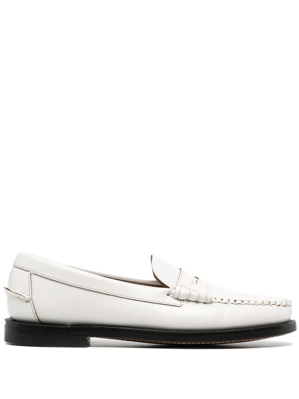 Dan penny-slot flat leather loafers Highlights - Optical white - Calf leather - Penny slot - Leather piping detail - Round toe - Slip-on style - Branded insole - Flat leather sole Imported Composition Lining: Calf Leather 100% Sole: Calf Leather 100%, Rubber 100% Outer: Calf Leather 100% SIZE & FIT Measurement HEEL 0.98 in(2.5 cm) Sole height 0.59 in(1.5 cm)