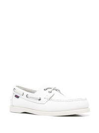 Portland leather boat shoes white calf leather round toe decorative stitching strap detailing branded leather insole flat rubber sole Imported Composition Sole: Rubber 100% Lining: Calf Leather 100% Outer: Calf Leather 100% SIZE & FIT Measurement HEEL 1.18 in(3 cm) Sole height 0.59 in(1.5 cm)