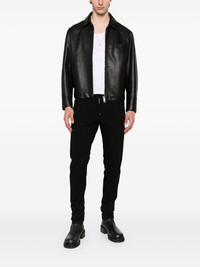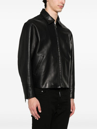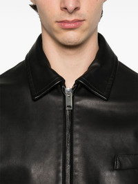 leather bomber jacket Highlights - Black - Front zip fastening - Two side zip-fastening pockets - Long sleeves Made in Italy Composition Lining: Cupro 100% Outer: Leather 100% SIZE & FIT Model measurements Height 6 ft 2 in(1.88 m) Bust/Chest 37.4 in(95 cm) Hips 38.58 in(98 cm) Waist 31.1 in(79 cm) FittingInformation Designed for a relaxed fit, this piece allows for comfort and movement when worn Firm leather offering little flexibility to maintain its durability and sturdiness