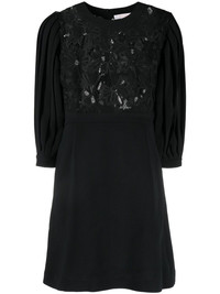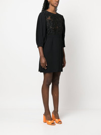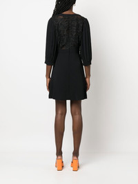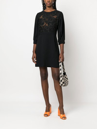 floral-panelled mini dress black floral panel detailing round neck three-quarter length sleeves A-line skirt Made in Italy Composition Outer: Polyester 100% Lining: Viscose 100% SIZE & FIT Model measurements Height 5 ft 10 in(1.77 m) Bust/Chest 29.92 in(76 cm) Hips 34.25 in(87 cm) Waist 23.62 in(60 cm) FittingInformation This piece fits true to size. We recommend you get your regular size Designed for a close fit at the bust and waist, but loose at the hip Made with a mid-weight non-stretch fabric