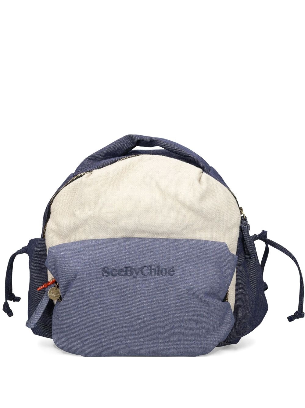 logo-embroidered backpack Highlights - Dark blue - Quilted design - Zip fastening - Adjustable straps - Top handle Imported Composition Outer: Denim 100% Lining: Fabric 100%