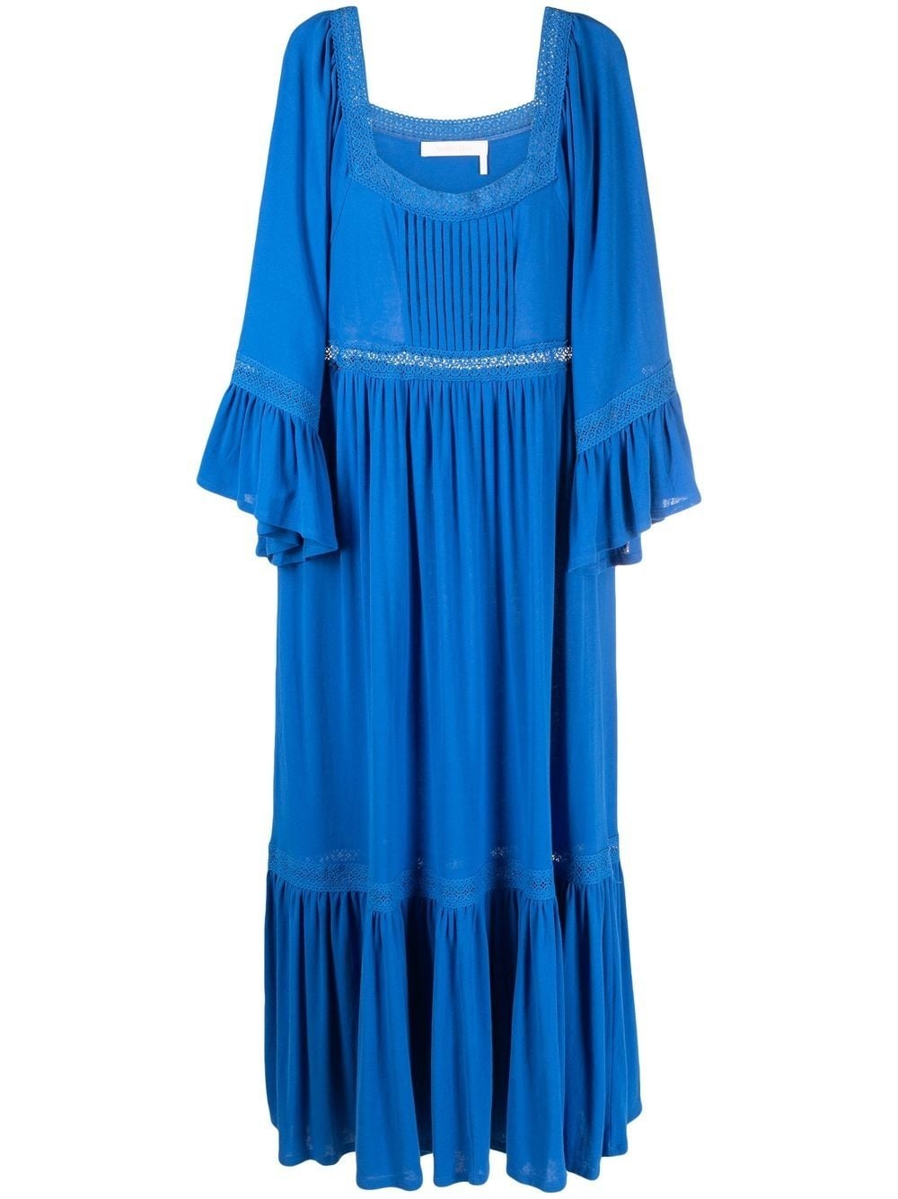 square-neck midi dress wild blue cotton flared square neck long sleeves fitted waistline mid-length Imported Composition Cotton 100% SIZE & FIT Model measurements Height 5 ft 10 in(1.79 m) Bust/Chest 31.1 in(79 cm) Hips 35.03 in(89 cm) Waist 24.01 in(61 cm) FittingInformation This piece fits true to size. We recommend you get your regular size Designed for a close fit at the bust and waist, but loose at the hip Made with a mid-weight fabric Washing instructions Machine Wash
