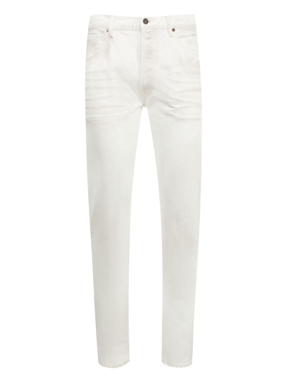 distressed jeans Highlights - White - Five-pocket styling - Leather patch - Button fly - Belt loops Imported Composition Cotton 100% Washing instructions Read Manufacturer Guidelines