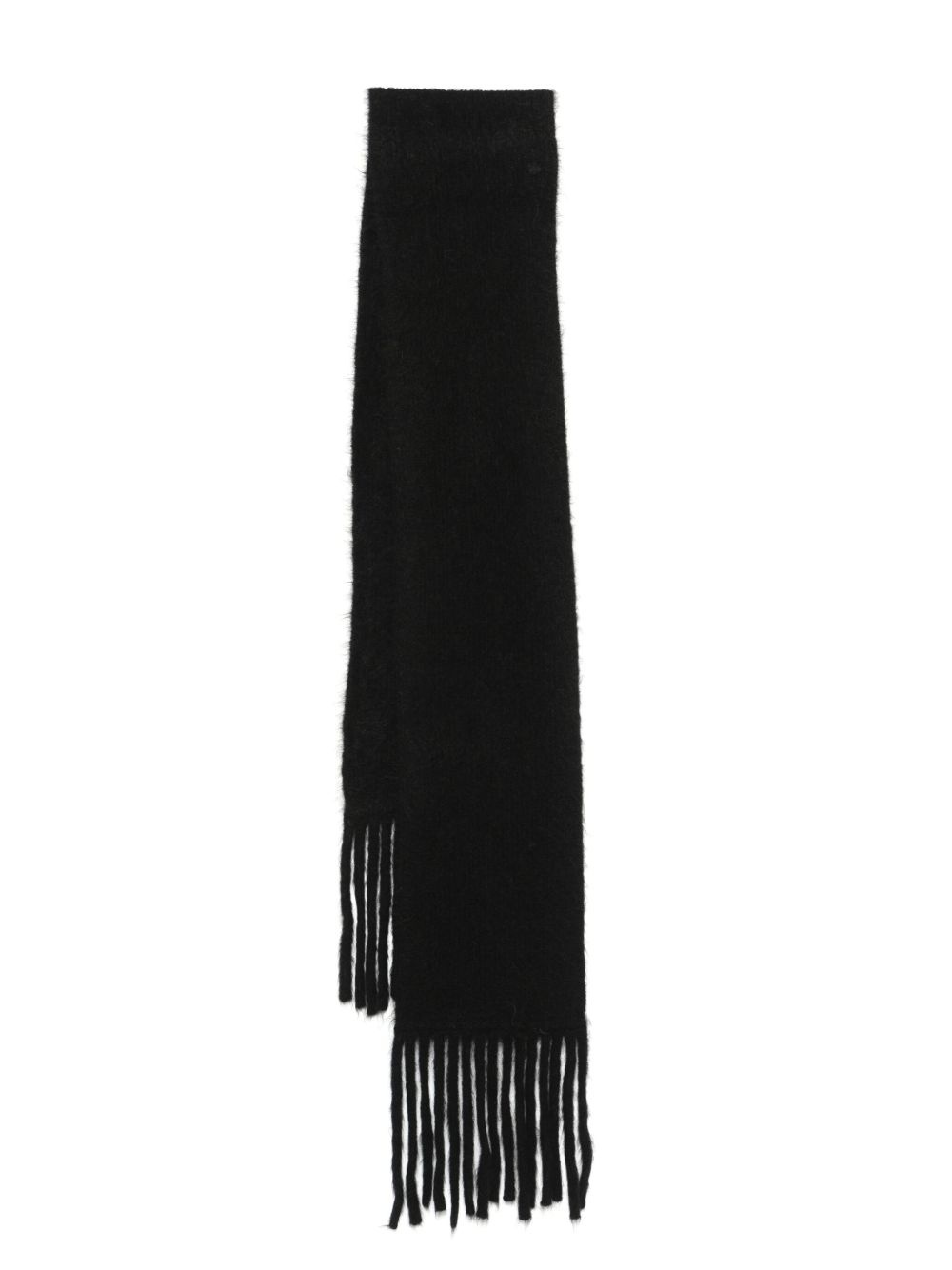 Fuzzy scarf Highlights - Black - Alpaca wool-blend - Brushed effect - Fringed edge - Rectangle shape Imported Composition Alpaca 78%, Nylon 19%, Elastane 3% SIZE & FIT Measurement LENGTH 118.11 in(300 cm) WIDTH 9.84 in(25 cm)