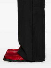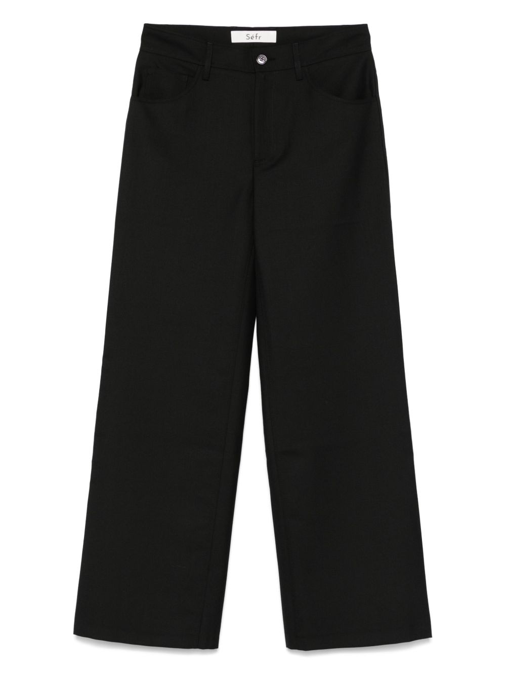 Jiro trousers Highlights - Black - Concealed fly and button fastening - Belt loops - Classic five pockets - Dart detailing Imported Composition Outer: Polyester 55%, Wool 45% Lining: Viscose 100% SIZE & FIT Model measurements Height 6 ft 2 in(1.87 m) Bust/Chest 37 in(94 cm) Hips 33.85 in(86 cm) Waist 27.95 in(71 cm) FittingInformation Designed for a straight-leg, allowing for an unrestricted and comfortable fit over the leg Made from a midweight non-stretch fabric
