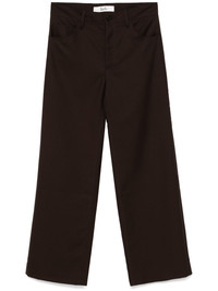 Jiro trousers Highlights - Brown - Textured finish - Front button and zip fastening - Belt loops - Classic five pockets - Straight leg Imported Composition Outer: Polyester 55%, Wool 45% Lining: Polyester 55%, Viscose 45% SIZE & FIT Model measurements Height 6 ft 2 in(1.87 m) Bust/Chest 37.79 in(96 cm) Hips 37.79 in(96 cm) Waist 30.31 in(77 cm) Measurement FRONT RISE 11.41 in(29 cm) INSIDE LEG 32.67 in(83 cm) Hem Width 22.83 in(58 cm) WAIST 31.49 in(80 cm) FittingInformation Designed with a wide leg, offering a loose and roomy fit Made from a midweight non-stretch fabric