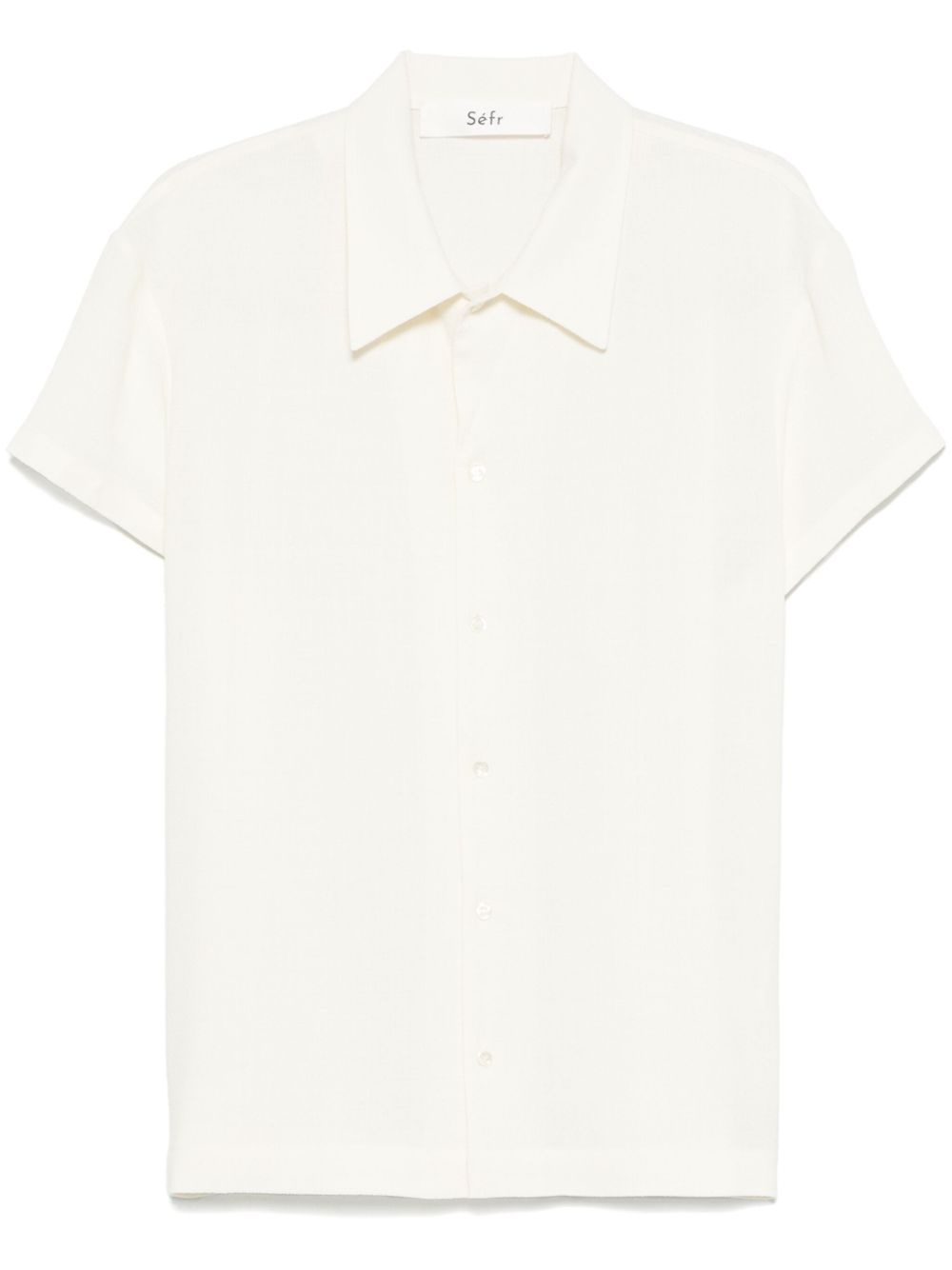 Mael shirt Highlights - Light beige - Front button fastening - Camp collar - Cap sleeves - Straight hem Imported Composition Viscose 60%, Virgin Wool 40% SIZE & FIT Model measurements Height 6 ft 1 in(1.85 m) Bust/Chest 35.82 in(91 cm) Hips 37.79 in(96 cm) Waist 29.13 in(74 cm) FittingInformation Designed to be unstructured, offering a loose fit throughout Made from a midweight non-stretch fabric Washing instructions Dry Clean Only