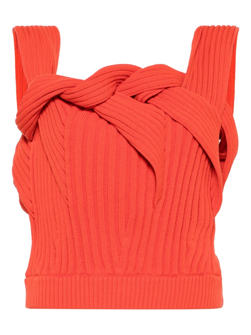 Nori top Highlights - Bright red - Ribbed hem - Knot detailing - Sleeveless Imported Composition Cotton 65%, Nylon 35% SIZE & FIT Model measurements Height 5 ft 10 in(1.78 m) Bust/Chest 33.46 in(85 cm) Hips 36.22 in(92 cm) Waist 23.22 in(59 cm) FittingInformation Designed for a relaxed fit, this piece allows for comfort and movement when worn Cropped in length Made with a lightweight knit, this piece offers some stretch