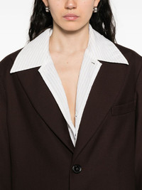 peak-lapels blazer Highlights - Dark brown - Peak lapels - Single button fastening - Long sleeves - Straight hem Imported Composition Lining: Viscose 100% Outer: Polyester 55%, Wool 45% SIZE & FIT Model measurements Height 5 ft 9 in(1.75 m) Bust/Chest 32.67 in(83 cm) Hips 36.22 in(92 cm) Waist 24.8 in(63 cm) Washing instructions Dry Clean Only