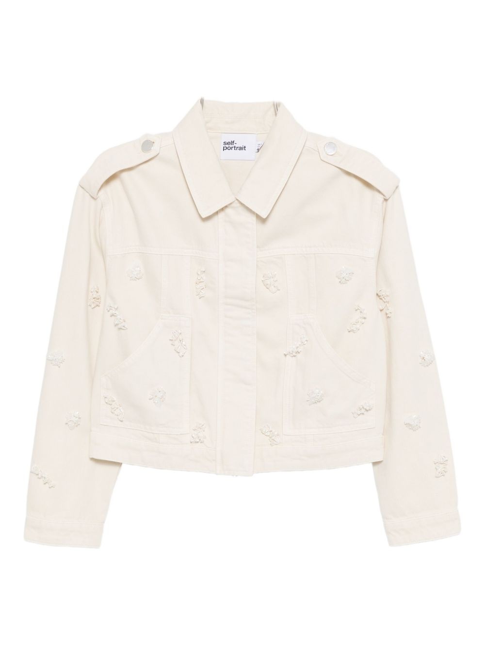Cream Denim Beaded Floral Jacket