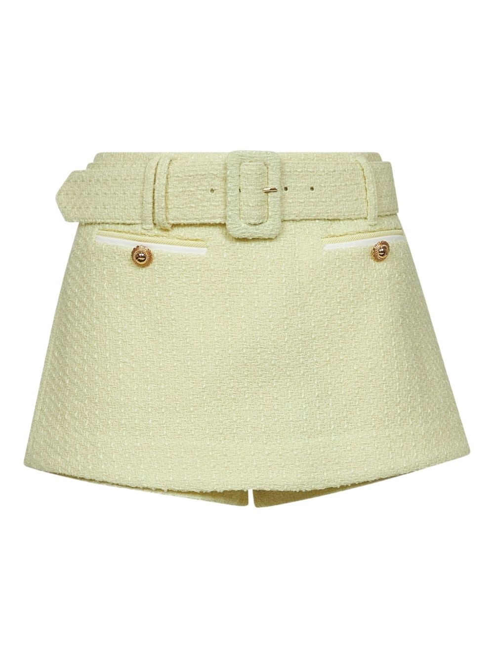 belted shorts Highlights - Yellow - Detachable and adjustable waist belt - Belt loops - Faux pocket detail Imported Composition Outer: Polyester 40%, Acrylic 26%, Wool 24%, Polyamide 10% Lining: Polyester 100%