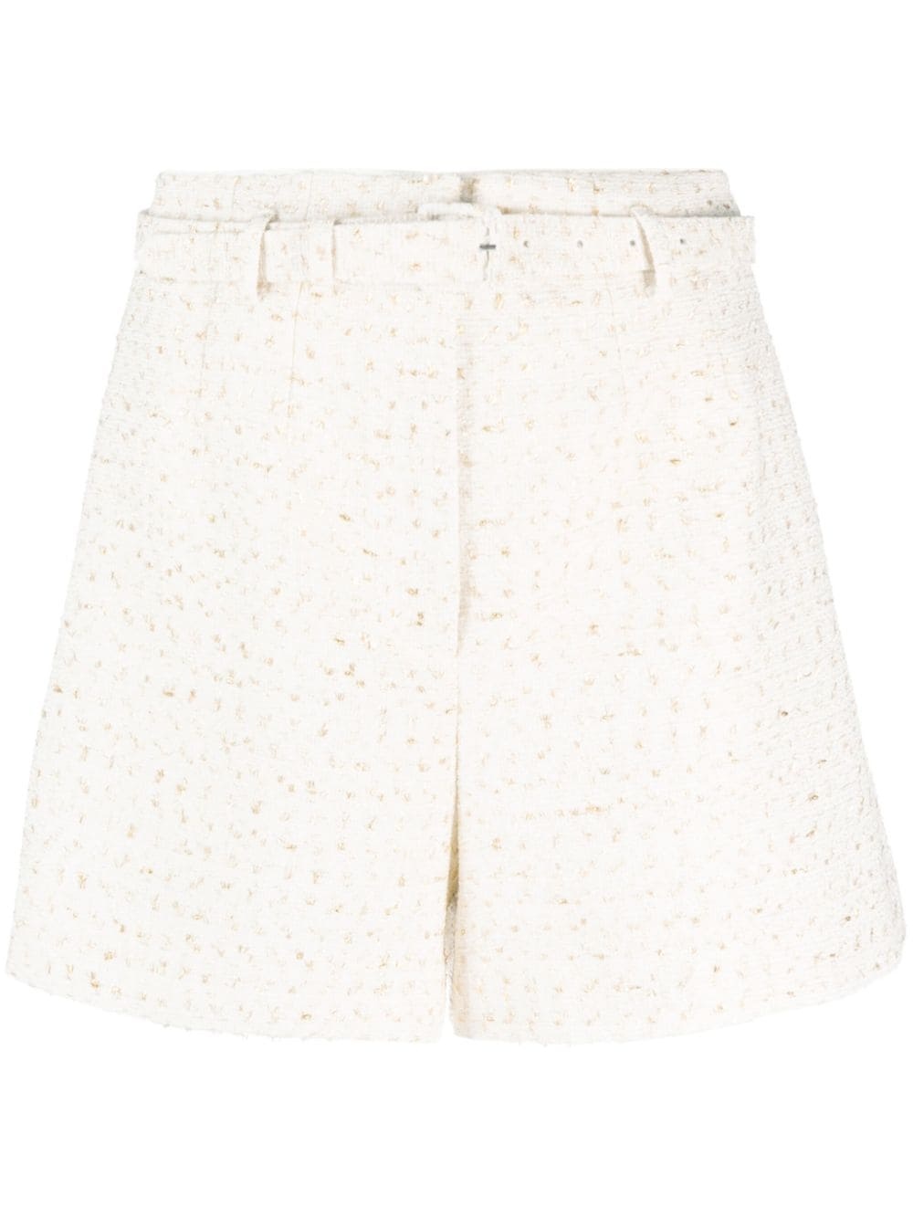belted boucle shorts Highlights - Cream white - Metallic threading - Boucle construction - Concealed front fastening - Belted waist - High-waisted Imported Composition Outer: Polyester 95%, Metallic Fibre 5% Lining: Polyester 100% SIZE & FIT Model measurements Height 5 ft 10 in(1.79 m) Bust/Chest 33.07 in(84 cm) Hips 35.82 in(91 cm) Waist 24.01 in(61 cm) Measurement FRONT RISE 14.17 in(36 cm) HIPS 38.58 in(98 cm) FittingInformation Designed for a relaxed, roomy fit The belt offers adjustability for fitted preferences Made from a midweight non-stretch fabric This piece fits true to size – take your usual size Washing instructions Dry Clean Only