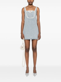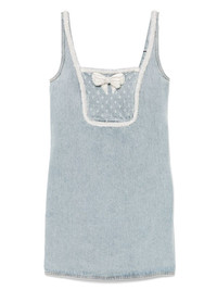 bow denim mini dress Highlights - Light blue - Rear zip fastening - Two side inset pockets - Square neck - Sleeveless Imported Composition Outer: Cotton 100% Lining: Polyester 70%, Cotton 30% SIZE & FIT Model measurements Height 5 ft 11 in(1.8 m) Bust/Chest 31.49 in(80 cm) Hips 36.61 in(93 cm) Waist 24.4 in(62 cm) FittingInformation Designed for a slim fit that sits just away from the body offering a close yet comfortable fit Sturdy and hard-wearing, this denim piece offers no stretch Washing instructions Dry Clean Only