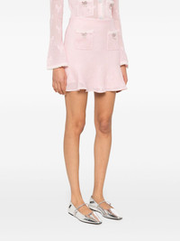 bow-detail crochet mini skirt Highlights - Bubblegum pink - Elasticated waistband - Two front patch pockets - Full lining Made in United Kingdom Composition Outer: Cotton 85%, Polyester 15% Lining: Cotton 100% SIZE & FIT Model measurements Height 5 ft 9 in(1.76 m) Bust/Chest 31.88 in(81 cm) Hips 35.43 in(90 cm) Waist 24.8 in(63 cm) FittingInformation Designed with an asymmetric hem, this skirt is intended to be worn just below the waist The elasticated waist allows for a comfortable fit Made from a midweight non-stretch fabric, this piece offers minimal elasticity when worn Washing instructions Dry Clean Only