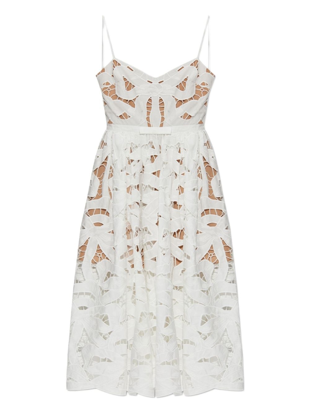 bow-detail dress Highlights - White - Guipure lace - Bow embellishment - A-line skirt - Spaghetti straps - Fitted bodice Imported Composition Outer: Linen/Flax 52%, Cotton 48% Lining: Cotton 100% Washing instructions Read Manufacturer Guidelines