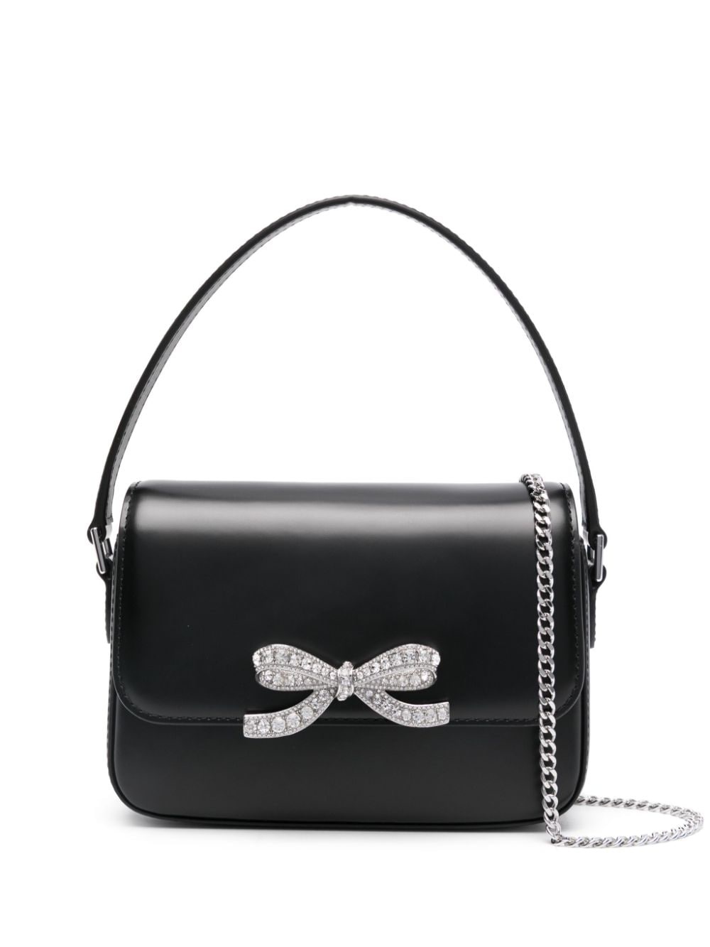 bow-detail leather cross body bag Highlights - Black - Calf leather - Smooth grain - Single flat top handle - Detachable chain-link shoulder strap - Foldover top - Bow detailing with rhinestone embellishment - Logo print to the rear - Main compartment - Internal slip pocket - Silver-tone hardware - Magnetic fastening Imported Composition Outer: Calf Leather 100% SIZE & FIT Model measurements Height 5 ft 9 in(1.75 m) Bust/Chest 31.88 in(81 cm) Hips 34.64 in(88 cm) Waist 24.01 in(61 cm) Measurement DEPTH 1.96 in(5 cm) HANDLE 8.66 in(22 cm) HEIGHT 3.93 in(10 cm) STRAP 43.3 in(110 cm) WIDTH 6.29 in(16 cm)