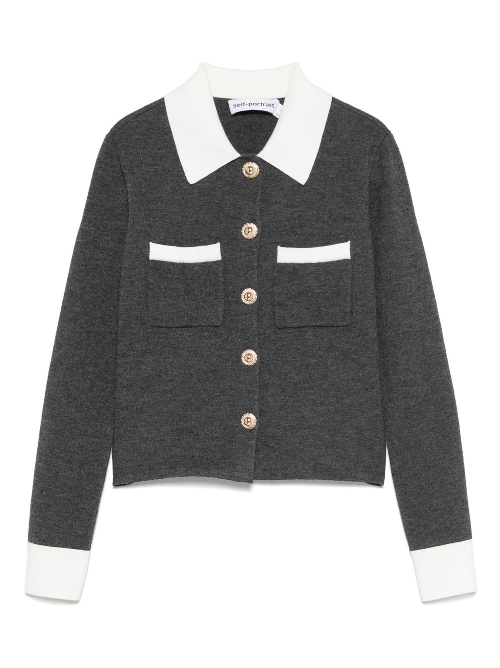 Grey Contrast Collar Cardigan