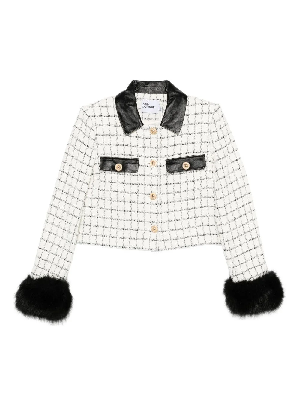 checked faux-fur cuff jacket Highlights - Beige - Checked pattern - Leather collar - Faux-fur cuffs - Button fastening - Flap pockets Imported Composition Outer: Calf Leather 100%, Polyester 99%, Metallised Fibres 1% Lining: Cupro 100% SIZE & FIT Model measurements Height 5 ft 9 in(1.75 m) Bust/Chest 34.64 in(88 cm) Hips 36.61 in(93 cm) Waist 26.37 in(67 cm) Washing instructions Dry Clean Only