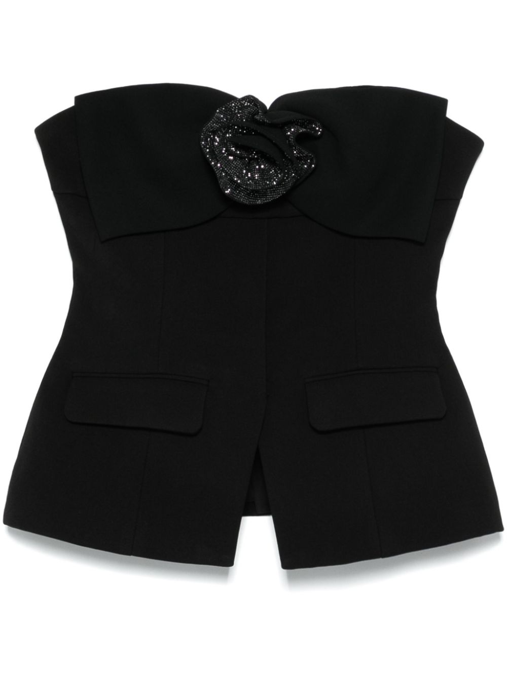 Corsage top Highlights - Black - Concealed rear hook and zip fastening - Grip tape top - Built-in fabric bra - Two front flap pockets Imported Composition Outer: Polyester 100% Lining: Polyester 100% SIZE & FIT Model measurements Height 5 ft 10 in(1.77 m) Bust/Chest 32.28 in(82 cm) Hips 35.03 in(89 cm) Waist 25.19 in(64 cm) FittingInformation Designed for a close fit throughout Made from a midweight non-stretch fabric Washing instructions Dry Clean Only